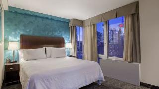 This city hotel is conveniently located in Midtown Manhattan, just steps away from Empire State Building. Built in 2008, this fully air-conditioned hotel comprises of 298 brand new guest rooms, including 2 luxurious suites. A 24-hour check-out service is provided. Beverages are served in the cosy Pavilion Lounge. Guests can order evening room service or make use of the laundry services. The newly appointed guestrooms come equipped with 32-inch LCD flat screen TV, mini refrigerator and a microwave. Complimentary high-speed wired and wireless Internet access is available in each guestroom, as well as secure remote printing directly to the hotel’s business centre. The en suite bathrooms come with a shower and hairdryer, and further in-room amenities include king-size beds, ironing set and air conditioning and heating units.