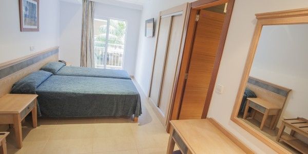 Our Dunas Blancas Hotel is a 167 rooms family hotel in Mallorca, run by the owners, where the attentive and cordial treatment of your personal highlights. It is located just 50 meters away from the Playa de Palma, a 5 km beach fine golden sand.It has a large and bright reception, completely renovated. It highlights our Tapas Bar-Cafeteria with a terrace overlooking the sea and a large modern space with several TV screens. All facilities offer air conditioning and heating.The Hotel Dunas Blancas offers two saltwater outdoor pools, several sun terraces with sunbeds, an “Internet Corner”, a bicycle storage room, WiFi throughout the hotel (free for bookings made through our website) and a restaurant with a cold and hot assorted buffet offering “Show Cooking” at breakfast time.