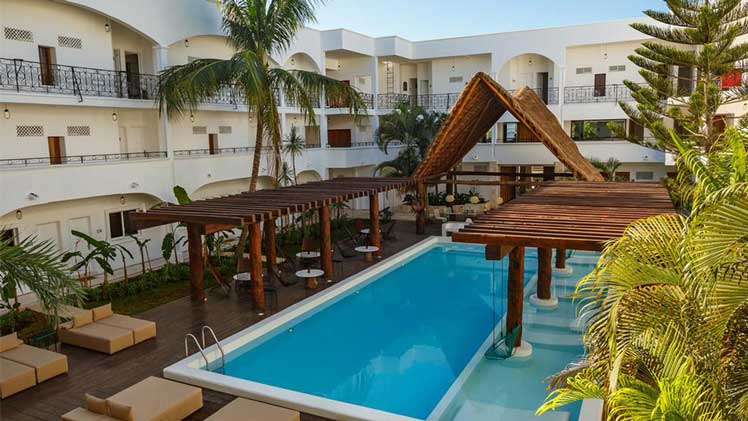 The new hotel HM Playa del Carmen has been opened this year. Located a few metres from the Playa del Carmen, the hotel susprises by its modern, fresh style; without forgetting the details mexicans, and traditional ancestral reasons. Its 91 rooms are spacious, comfortable and elegant and include a tasty and varied buffet at breakfast. All its facilities are designed so that you don’t miss anything during your vacation in Playa del Carmen, and among them, highlights the elegant outside swimming pool with sun loungers and hanging chairs in it.