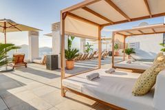 The hotel Hotel Hoposa Pollentia – Only Adults is located next to a public sandy beach. The nearest bars and restaurants can be found at a distance of around 300 m. The old town is around 7 km away. The nearest shops you can reach within around 300 m, a supermarket is around 100 m away. There is a 24h shuttle service between the hotel and the airport (for a fee) 24h a day. On the beach are cushions for a fee available. The air-conditioned, GPS-verified hotel is equipped with a 24h reception (check-in is possible around the clock), a lobby bar, Wi-Fi, internet access, 2 lifts, showers and changing rooms, a first aid kit as well as a TV lounge with satellite TV. In the outdoor area of the property you will find a garden as well as a pool that is open seasonally, where sun loungers, sun umbrellas and pool towels are available for free. Furthermore, outside you can find a sun terrace on the roof of the building. You can store your valuables in the safe, and your luggage in the hotel`s storage room. In addition, the hotel Hotel Hoposa Pollentia – Only Adults is video-monitored 24h a day. There is also a laundry service available at an additional cost to customers as well as an ironing service. For your comfort there is a concierge service. If necessary, you can contact the medical centre at any time (for a fee). The energy supply is 220 Volts. For conventions and other business meetings, the hotel offers a conference area with printer as well as internet access. If you want to explore the holiday region, you can use the car and motorbike rental service close to the hotel. At the hotel reception, tickets are offered for excursions in the area. In your hotel, a lot of focus is placed on sustainability. This includes organic food and ecological meals and a central room air-conditioning. That is why the hotel Hotel Hoposa Pollentia – Only Adults was also awarded a sustainability certificate. The hotel requires that all guests pay a deposit upon arrival. American Express, Euro/Master Card and Visa are accepted as means of payment.