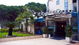 This adult only hotel is situated on the main Malgrat de Mar beach, Maresme Coast. From the hotel to the village centre is only 400 m. The seafront with its shops, restaurants, bars and clubs is just 50 m from the hotel. The Tordera River and the Sant Genís de Palafolls forest are just a 30-minute walk away. Calella is 10 minutes’ drive away, and Barcelona can be reached in 80 minutes using public transport. The main train station is just 450m away. Barcelona International Airport (BCN) is 69 km away, and Girona-Costa Brava Airport (GRO) is only 37 km from the hotel.This 101-room hotel was completely renovated in 2001/2002, but every year different areas of the hotel are being updated.