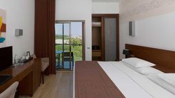 All of the rooms at Aqua Pedra Dos Bicos boast a modern look and contemporary furnishings to match. Each spill onto a private balcony that offers either sea or garden views.