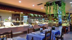 Catering As catering services the hotel offers half board and full board. Breakfast is offered from the buffet. Dinner is also served as a buffet. For the meals, there are a buffet restaurant and a 24h snack bar as well as the pool bar.