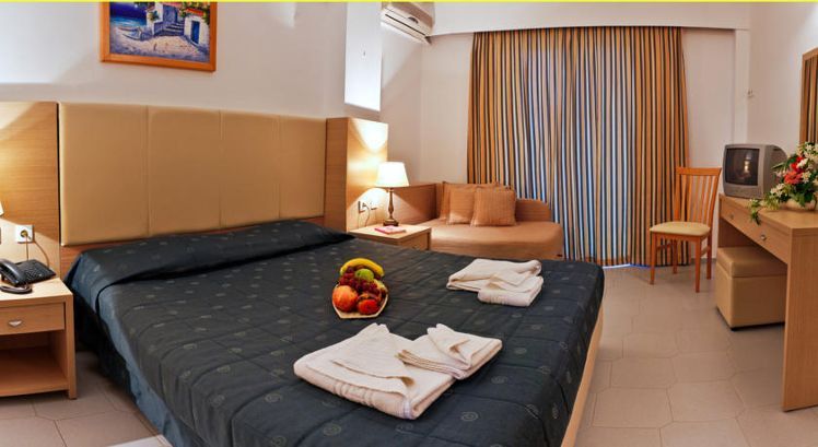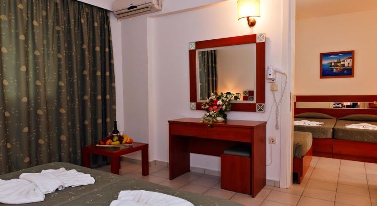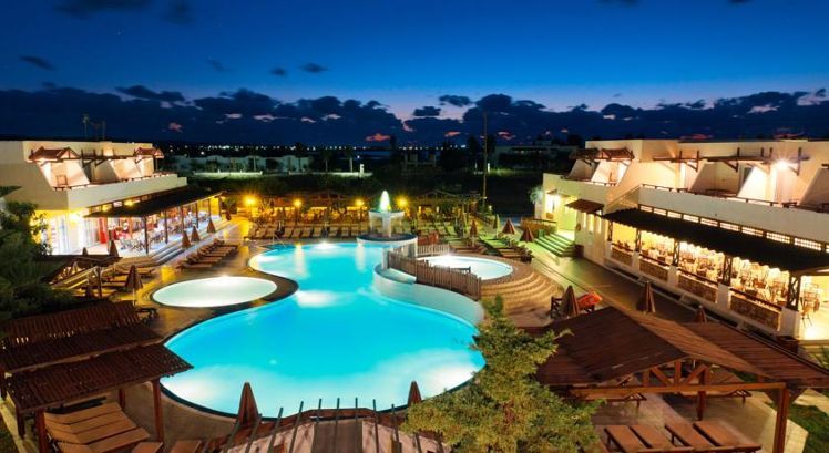 One mini football court, One mini Basket-ball court, Table tennis (free of charge), Billiard (with charge), 1 Children Playground, Playroom corner, Sea sports at the nearby beach of Tigaki (with charge) Onsite there are 2 swimming pools surrounded by a sun terrace, poolside snack bar, children’s playground, table tennis, mini basketball court, mini football court, a pool table and for the ultimate relaxation on your Tingaki holidays, there is also a massage service wiping off all the stresses giving you a relaxing experience. ALL INCLUSIVE Meals: Breakfast (07:30-09:30), lunch (12:30-14:00), dinner (19:00-21:00). Snacks from 10:00-12:30 & 15:00-18:00. Drinks from 10:00-23:00. Drinks include soft drinks, orangeade, sprite, lemon, soda, still water (from post-mix), juices, local beer, white & red wine and local brand Rum, brandy and Ouzo. Coffee, tea & cakes from 16:00-17:00. Children: Kids Dinner (on request before Midday) (17:30-18:00) and ice-cream for children (11:00-17:00).
