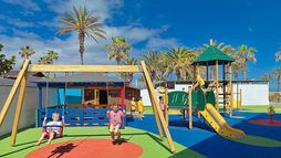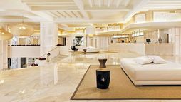 The first thing you’ll notice is its collection of lagoon style pools with palm trees and sunloungers sitting around the water’s edge. Not to mention, the grand welcome you’ll receive when you step foot in its elegant reception area where you’ll find a shiny marble floor and stylish white seating. There’s also a hotel-run kids’ club, allowing you to take advantage of the property’s grownup features.