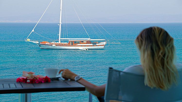 Hotel Kos Aktis Art consists of 36 luxurious and beautifully furnished sea view rooms and 6 junior suites all facing the Aegean Sea, a cosy bar – restaurant, shops, mini gym, meeting room, internet corner, reception 24 hours and room service from 08.00 – 23.00. Free WiFi in public areas and rooms.