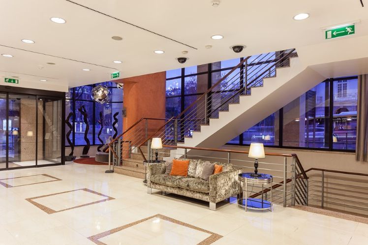 The 12-storey city hotel has 123 rooms in total. It offers its guests a 24h reception (check-in from 14:00, check-out until 12:00), a lobby, 2 lifts, air conditioning, a safe (for free) and a parking area (for a fee). For the meals, there is a restaurant and a snack bar. You can relax in good company in the hotel bar. WiFi is available for free. Room service and laundry service are available for a fee.
