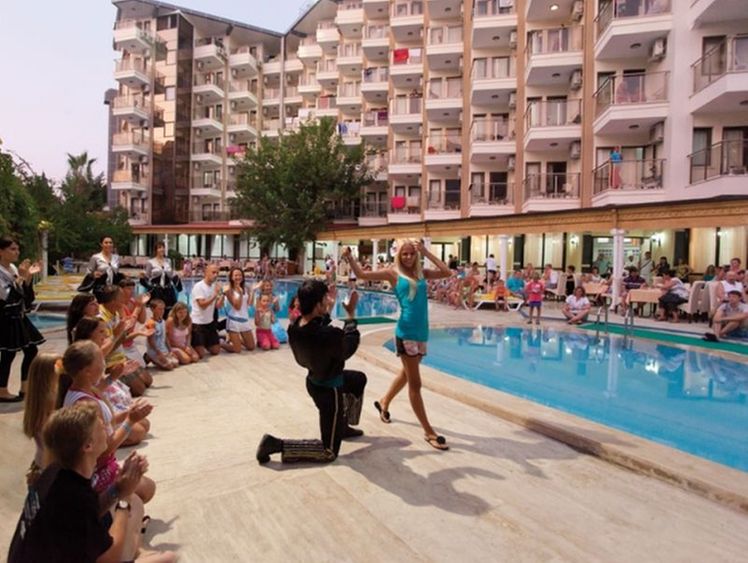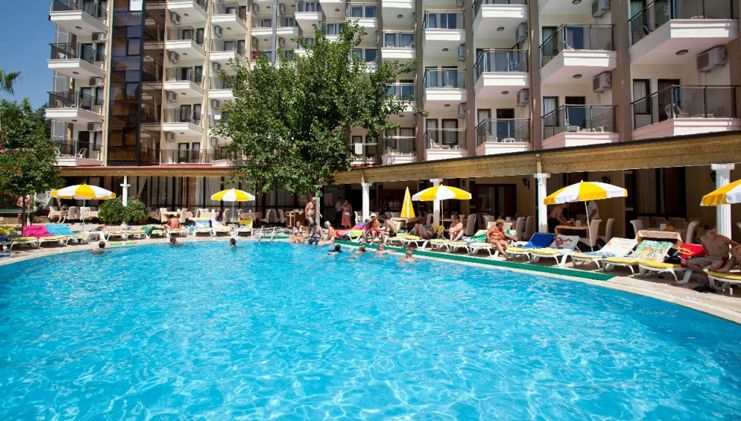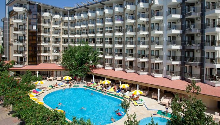 Hotel Monte Carlo is located in the tourist city of Alanya in the Antalya Province in Turkey. We offer all-inclusive accommodation along with outdoor pools, a water slide and a variety of sports. We have 119 rooms and 250 beds. Meals and most beverages are included in the room rate. Our hotel has a restaurant, a snack bar, a pool bar and during the winter time a lobby bar. During the high season, you can get your drinks in the pool bar and enjoy them in the lobby, as well. In the lobby, our guests can even use WiFi free of charge. Live entertainment is also provided.