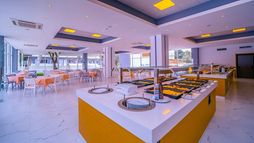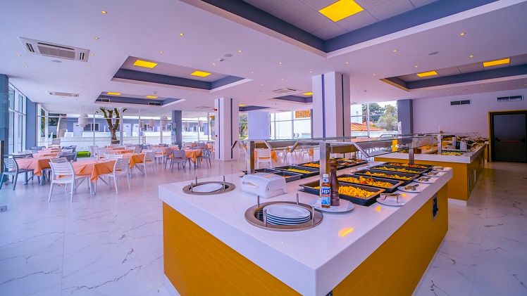 The building, which has only very recently been renovated, comprises 5 floors and is the ideal choice for a pleasant and relaxing holiday. Amongst the hotel’s facilities count a foyer with a 24-hour reception desk, lifts, a safe, and a currency exchange counter. Additional facilities include a bar, a TV room and a restaurant, as well as a playground in the hotel garden for younger guests.
