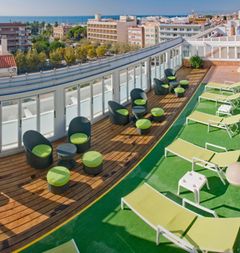 The hotel HOTEL REGENTE ARAGON is located approx. 150 m from the beach. The old town is only around 100 m away. Shops are right on your doorstep, a supermarket is around 300 m away. Reus airport is about 10 km away. In the surrounding an aqua park (approx. 2,5 km) and a golf course (approx. 4 km) offer entertainment during the best time of the year. The hotel has a 24h reception, a lobby bar, a lift, parking spaces (where applicable for a fee) as well as a TV lounge with satellite TV. In the outdoor area of the property you will find a seasonally open, heated fresh water pool incl. jacuzzi, where you can rent sun loungers (charges may apply). Furthermore, outside you can find a roof terrace. Inside the hotel you can use an indoor pool. In addition, the hotel HOTEL REGENTE ARAGON is video-monitored 24h a day. For your entertainment, the hotel offers a library/reading room. You can store your luggage in the hotel’s storage room. To clean your clothes there is a laundry service. The energy supply is 230 Volts. If you want to explore the holiday region, you can use the car rental service close to the hotel. At the reception, tickets are offered for excursions in the area.