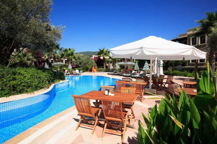 Combining typical local architecture with a modern twist, this 78-room hotel consists of 14 low-rise, stone-built blocks which nestle amongst an ancient olive grove over-looking Torba Bay on Bodrum’s northern peninsula. The airport is just 33 km away and the cosmopolitan town of Bodrum is within less than a 10-minute car ride. The hotel features spacious gardens with a couple of pools, a restaurant and bar and has spa facilities for those wishing to indulge in some pampering. Public transport runs close-by and small restaurants and cafe bars can be found close to the water’s edge.