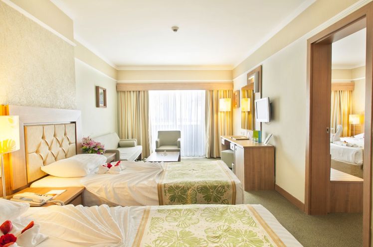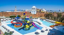The hotel Innvista Hotel Belek is located approximately 1,9 km from the private and public beach. The old town is around 31 km away. A supermarket is around 1,5 km away. There is a shuttle between the hotel and the airport (for a fee). On the beach are cushions, sun umbrellas and beach towels available. The hotel has a 24h reception (check-in is possible around the clock), a lobby bar, Wi-Fi, a lift, a supermarket and other shops, a hairdresser as well as a first aid kit. In the outdoor area of the property you will find a pool that is open seasonally (open from April to October), where sun loungers and sun umbrellas are available for free. There is also a children’s pool with 3 water slides. For your entertainment, the hotel offers a disco. For very young guests, highchairs can be provided. You can store your luggage in the hotel’s storage room. There is also a laundry service available at an additional cost to customers. For your comfort the hotel page will ensure you are looked after. If necessary, you can contact the medical centre (for a fee). The energy supply is 220 Volts. If you want to explore the holiday region, you can use the car rental service close to the hotel (extra fee).