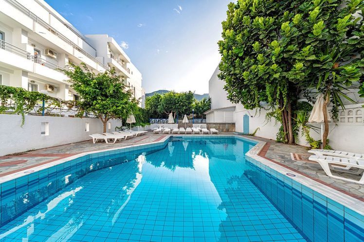 Iro Hotel is a budget-friendly hotel in the heart of Hersonissos, just 100 m from the beach and approximately 25 km from Heraklion’s international airport. Accommodation comprises simple rooms, all decorated with a traditional Greek island aesthetic. Also available are a restaurant, a bar and a swimming pool.