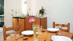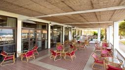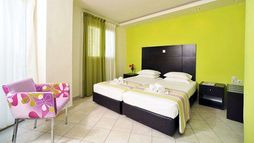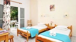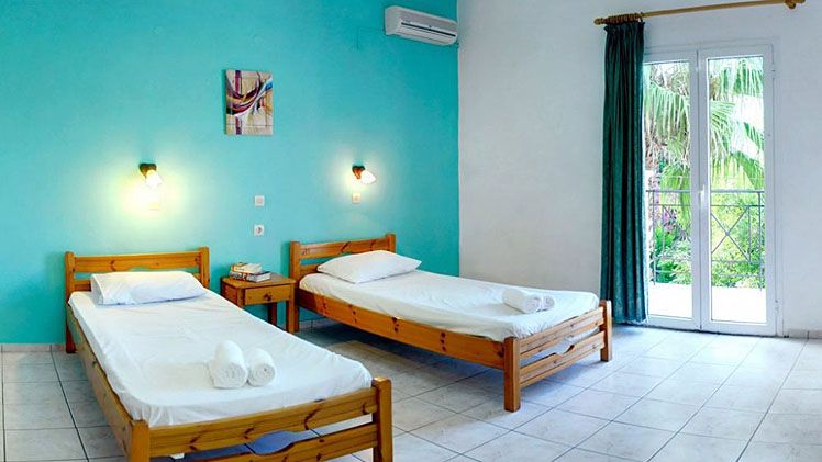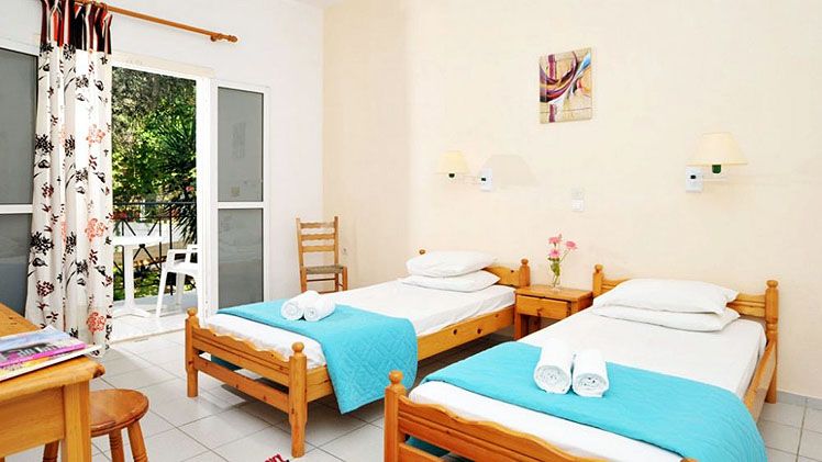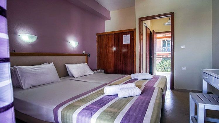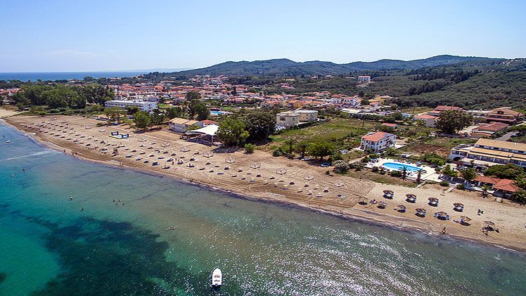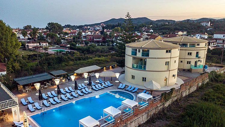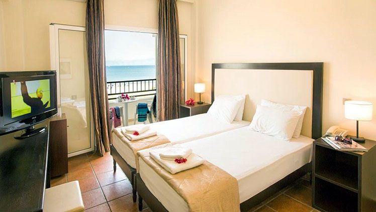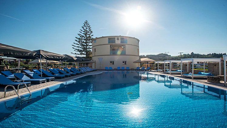 Spilling out onto the beach, with a fantastic view of the Greek mainland, it oozes class & style; it is an exciting and comfortable place to spend a great holiday and enjoy magnificent sunrises from the unique and privileged position of the beach side bar. From the comfort the pool or beachside cabanas, our guests can relax and enjoy our hospitality, with waiter service on offer and our poolside bar also offering a wide variety of meals all day, into the evening, satisfying all tastes and appetites. All of our guests may enjoy all the facilities on offer, including 24 hour reception (during high season) free WI FI, Medical Services, Safety Deposit Boxes & Laundry Service. All of our guests can also enjoy our fantastic In House events including the infamous Sandstorm Beach Party.