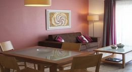 The apartment hotel comprises a total of 131 apartments in a holiday complex spread over 3 buildings. The 4-storey main building includes a lobby area, a bar, a games room, a TV and lounge room as well as a restaurant. A hairdressing salon, a shop and a small supermarket also feature within the hotel. Guests may make use of the room and laundry services. For younger visitors aged from 4 to 12 years, there is a kids’ club and a playground. Those arriving by car are able to make use of the car parking and garage facilities. Direct access to the beach through the hotel lovely gardens.