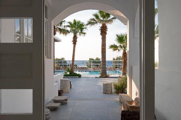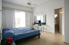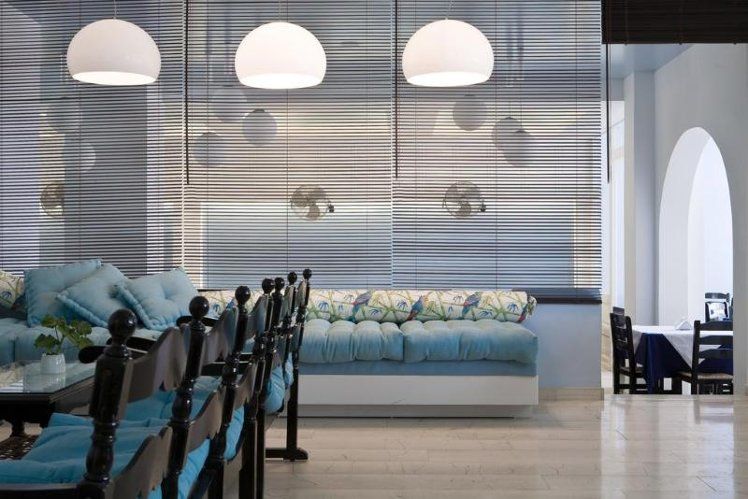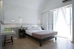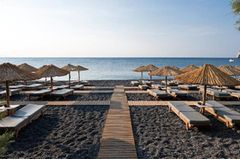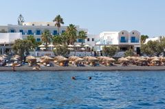 This wonderful hotel, built in Aegean style with 70’s linear design forms, enjoys a perfect location at the quieter end of the main strip in Kamari. Within walking distance guests can reach the famous volcanic black sand beach. In the immediate vicinity guests will find a series of shops, supermarket and restaurants. Fira is approximately 9 km away. This is the perfect hotel for endless hours of leisure by the sea.