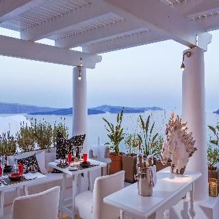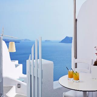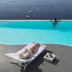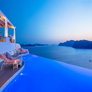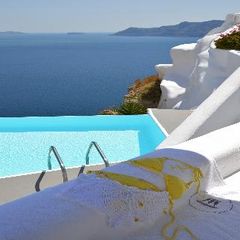 Katikies Hotel harmoniously blends the aesthetics of luxury Caldera living within one of the most magnificent natural settings in the world, in a splendid environment affording every luxury. Careful attention has been given to all amenities and services that are available to guests from the selection of fine dining options, the 3 infinity swimming pools, indoor Jacuzzi, sunbathing deck with open air Jacuzzi and a small library with internet facilities.