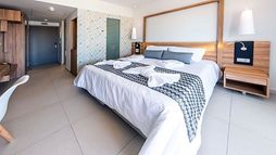 Dining options include three buffet restaurants on site and an à la carte Roof Top Restaurant available by reservation for guests wishing to book a set menu experience, with a selection of menus offered for an additional charge. The main restaurants present Mediterranean and Cretan cuisine prepared using local ingredients, with specific choices for children and alternatives suitable for vegetarians. Light snacks, pastries, sandwiches and a range of refreshments are available at the pool and beach bars, and guests may request packed sandwiches for excursions through reception. Beverage service is provided across the pool bar and beach bar where guests can order soft drinks, coffees and alcoholic beverages, and the hotel’s dining venues also host themed culinary events and freshly baked items on rotation.