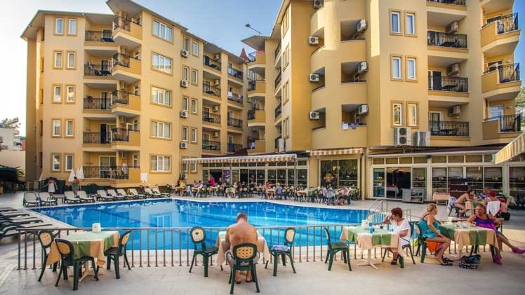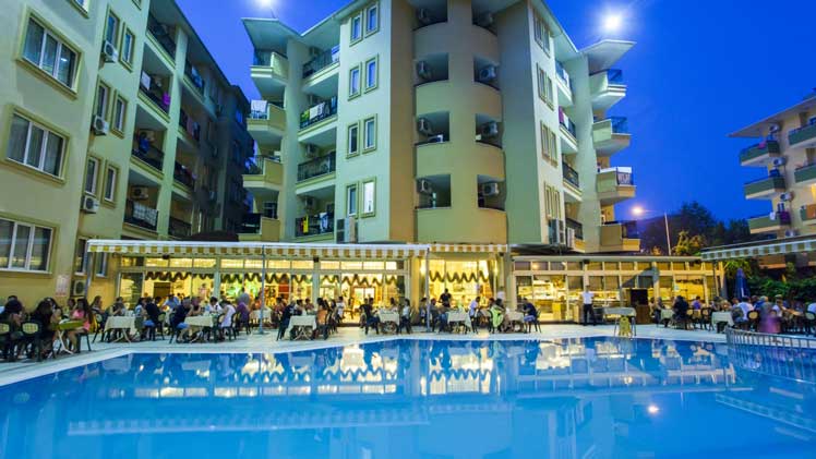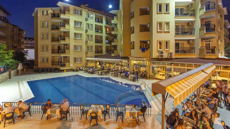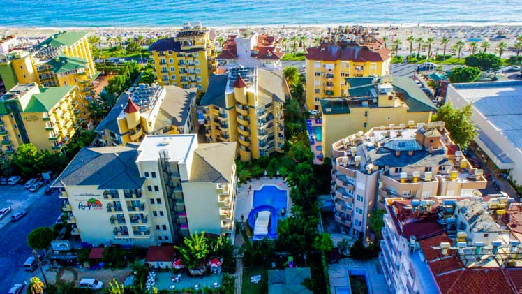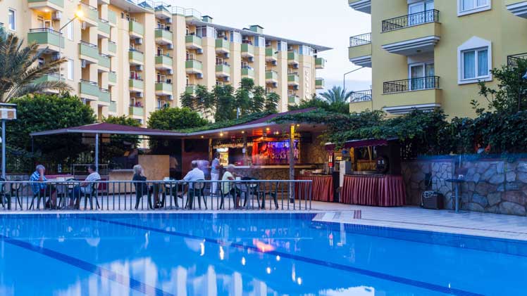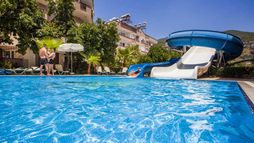 Kleopatra Royal Palm in Kleopatra has 188 rooms and was renovated in 2011. To make your stay more comfortable a lobby, a reception, a conference room and air conditioning are available. The staff in this 5 storey hotel speaks English and German. A playground for children is available. The hotel features a fresh water swimming pool, seasonally open with a separate children’s pool. For convenience, refreshing drinks are offered at the pool bar. Sunshades and sunbeds are available for an additional fee at the beach and free of charge at the pool. For convenience the hotel offers room service, medical care, laundry service, wake-up service, a safe and maid service. Internet access is provided at wifi-hotspots. This family friendly hotel offers a children’s pool and a child club to ensure a comfortable stay for parents as well as young guests.
