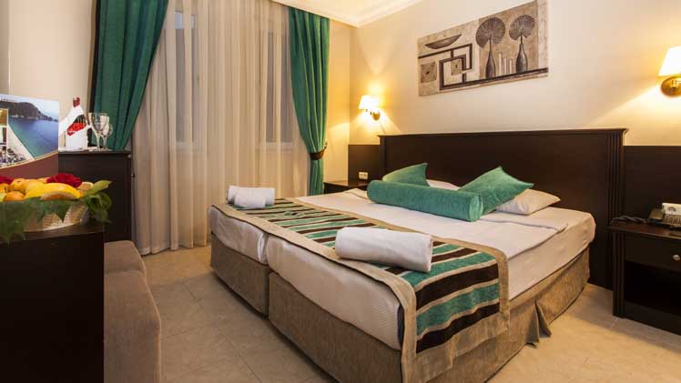 Guests can relax in the spacious, beautifully decorated rooms of the hotel which are fully equipped and have magnificent view. Royal Palm Hotel is the ideal place for relaxing and pleasant vacations.