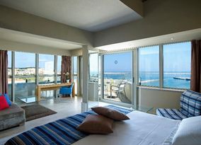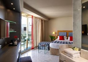 The Kyma Suites Beach Hotel is located approximately 500 m from Rethymno, a sandy beach. At the beach, sun umbrellas and sun loungers are free of charge. The nearest town is Rethymno (Chania around 60 km, Heraklion around 90 km). The nearest shopping facilities are located approximately 50 m from the hotel, a supermarket can be reached after around 500 m. Entertainment facilities such as a cinema are approximately 1 km away. The following attractions can be reached from the hotel: Archaeological Museum of Rethymno (approx 500 m away), Venetian Harbour (approx 500 m away), Centre of Byzantine Art (approx 500 m away), Municipal Garden (approx 600 m away) and Historical and Folklore Museum (approx 700 m away). For mobility during your holiday, there is a taxi rank (around 10 m away) and a bus stop (approx. 100 m away). For medical treatment in emergencies, there is a hospital around 1 km away. The airport (CHQ) is approximately 67 km away. Another airport (HER) is located approximately 80 km away.