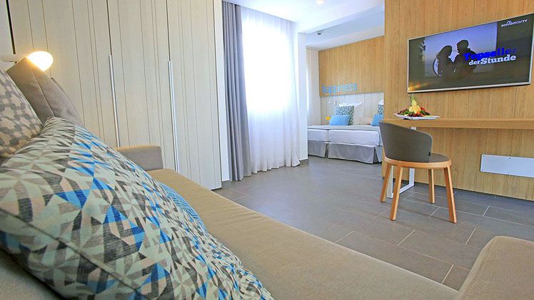 At the heart of the resort you’ll find a curved outdoor pool with plenty of space to test out your backstroke, this is also surrounded by a wide sun terrace where a line-up of loungers are waiting to be snapped up. Pool towels are also available for added convenience, but you’ll be expected to pay a 10 euro deposit. Mini splashes have their own section of the water, which is heated during the winter months. Speaking of little ones, when they’re not making use of the onsite playground, the kids’ club is bound to keep them smiling.