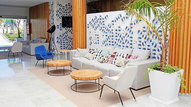 Oak walls, green and blue embroidered cushions decorating the bed and beach wall art, everything is designed to suit the tropical climate. If you’re wondering what amenities are included, all guests can take advantage of free Wi-Fi, a flat screen TV and air conditioning. What’s more, you’ll find a sofa bed in the lounge and a balcony or terrace when you want to relax outdoors.