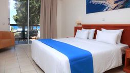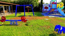 It is part of a resort complex suitable for families who seek relaxing and joyful moments. The common areas are air conditioned and feature wireless Internet access (for a fee). The hotel also includes a bar and disco, a café, fully equipped business facilities, a restaurant and a car parking area. There is a lobby with 24-hour reception and check-out service, currency exchange facilities and lift access to the rooms. Guests may also make use of the auditorium, games room, children’s playground, kids’ club and bicycle hire.The hotel’s rooms are modern and well furnished. They provide a private bathroom with a shower and bath, a hairdryer, direct dial phone, satellite TV, a mini fridge and a safe (for a fee). Individually regulated air conditioning and heating is provided, and each room has a balcony or terrace.