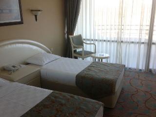 This outstanding Hotel can be found in Kemer. Pets are not permitted on the premises. Directly on the beach, this Tekirova resort is within 10 kilometers of Tres Islas Ruinas de Faselis and Phaselis Museum. Moonlight Park and Beach and Kemer Marina are also within 12 mi (20 km).All 385 rooms offer amenities such as deep soaking bathtubs, furnished balconies, and 24-hour room service. With minibar (with some free items), coffee and tea making facilities and LCD TV with satellite channels, you will have everything you need to spend a pleasant stay.