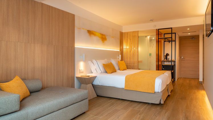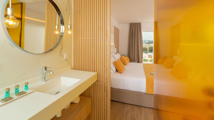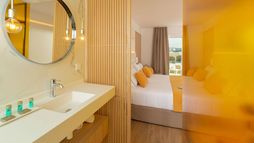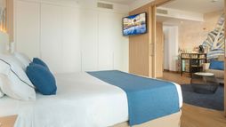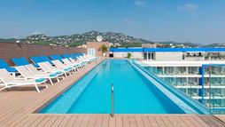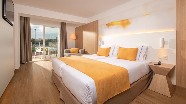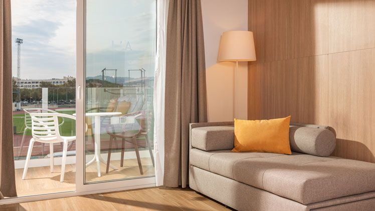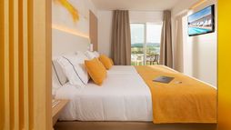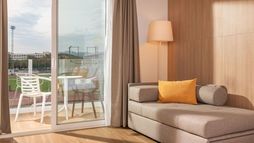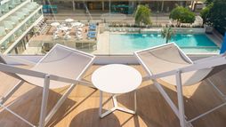 L’Azure offers 411 rooms, each designed to provide maximum comfort and convenience. Guests can choose from a variety of room types, including Standard, Superior, Deluxe, Family Room, Family Suite, and Suite, all equipped with modern amenities such as USB sockets, LED TVs with Chromecast, small fridges, and Dolce Gusto coffee corners. Many rooms also feature furnished balconies or terraces with views of the street or pool, providing a perfect spot to relax and enjoy the Mediterranean climate.