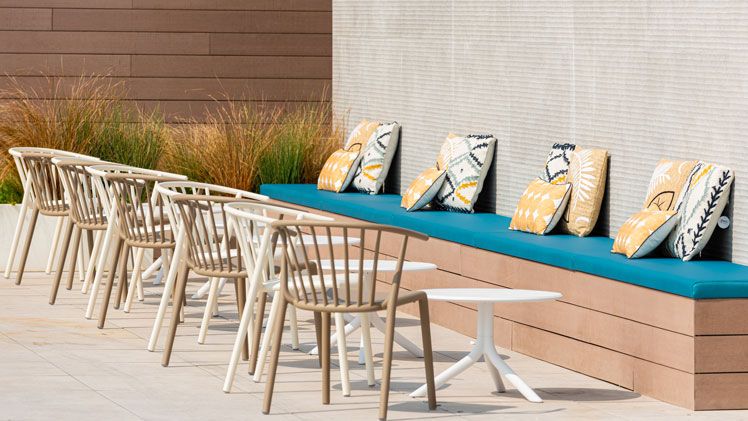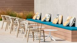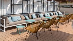 The facilities at L’Azure cater to a wide range of interests and needs. The hotel boasts a large main swimming pool and a Splash Park for families, as well as an exclusive adults-only rooftop pool and wellness area. Guests can take advantage of a fully equipped gym, a dedicated bike station, and comprehensive spa services including a heated pool, sauna, and a variety of treatments. Additionally, the hotel offers versatile event spaces, making it suitable for both corporate gatherings and personal celebrations.
