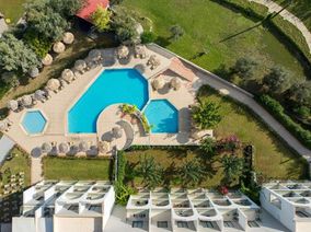 Perched on Kiotari Beach, the hotel is surrounded by landscaped grounds and enjoys direct sea views across the Aegean. It lies just 14 km from the historic Lindos Village, 53 km from Rhodes Town and 57 km from Rhodes International Airport, with a bus stop only 100 m away. Nearby attractions include the Butterfly Valley (50 km) and Prasonisi Windsurfing Centre (36 km), making it a convenient base for exploring Rhodes island.