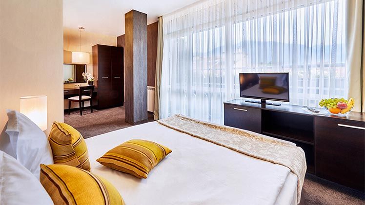 Lucky Bansko Apart hotel SPA & Relax is a fantastic complex. The hotel consits of two buildings which are connected with а warm connection. Both of them are luxury furnished to the highest standards in hospitality, fully equipped with a kitchenette and all the necessary amenities. Lucky Bansko is located only 450 m. from the center of Bansko and 1.50 km from the first station of the Gondola. During the active winter season the hotel provides free of charge shuttles to the Gondola and back and free evening transportation from the hotel to the center and back. All guests of the hotel can enjoy of the following services in the SPA center, free of charge: ice room, steam bath, sauna, contrast showers, Technogym fitness center; Indoor BIO pools for children and adults with a water temperature of 33 ° C, a saline pool with salts from the Dead Sea and salt room (relax zone) lined with salt from the Himalayas. The Salt room is used for pleasant relaxation and recreation, but also has a curative effect for respiratory and skin diseases and mental problems. Lucky Bansko apart hotel is children welcome. For the little guests the hotel provides bathrobes and slippers, high class children’s bath cosmetics. There are also, free of charge: outdoor playground (from April to November); kids Club with a variety of fun and games (for children 3-6 yrs); room with computer games (5 + years); two fully equipped computer zones with unlimited Wi-FI internet access. The hotel provides children’ beds and chairs, stroller and walker; safety plugs on request. All areas are filled with carpets and windows secured.