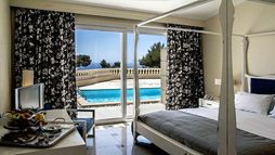Welcome to the Mabely Grand in Kambi. The hotel is located 15 km from the pebble stone beach. The closest cities to the hotel are Zakynthos (29 km) and Agios Leon (10 km). To make your stay more comfortable 2 elevators, air conditioning, a lobby, a reception, a lounge, a mini market and a hairdresser are available. The staff in this 2 storey hotel speaks French, German and English. A playground for children is available. 2 fresh water swimming pools are available. Guests can unwind with a drink at the poolside bar. Sunshades and sunbeds are available free of charge at the pool. Distance from the hotel to: airport ZTH (25 km), Ship Wreck (15 km) and Blue Caves (25 km). For your entertainment the hotel features a TV lounge. Vehicles may be parked in the parking lot.