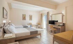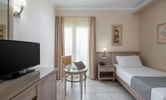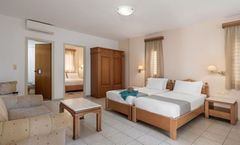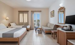 Magda Hotel is built in a style where the atmosphere and the soft colours and flowers will make you feel nice and comfortable during your holiday. The friendly atmosphere, comfortable rooms, excellent service and moderate prices make this hotel the ideal place for a nice and enjoyable holiday. The hotel is located in Gouves, 16 km from Heraklion, 14 km from the airport, 6 km from Chersonissos, 3 km from the traditional old village of Gouves, 200 meters from the resort centre of Gouves, and about 80 meters from a beautiful sandy beach. Except from the lovely sea front, you can also find bars and restaurants for your entertainment in the area. The hotel offers full daytime programs and evening shows by an international speaking animation team, plus Barbecues and Greek evenings that are organized regularly.