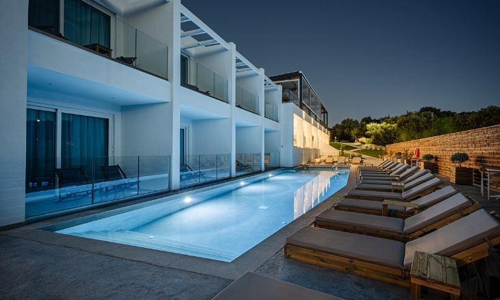 Magique Bleu Suites is a 5-star all inclusive hotel set amidst olive groves and vineyards, offering a well-rounded holiday experience. The property features an outdoor swimming pool, a summer terrace, and a golf course, all complemented by free Wi-Fi throughout the premises. With 70 contemporary junior suites and a range of on-site amenities, this hotel caters to travellers seeking both relaxation and a variety of activities.