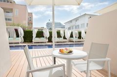 The 3-star all-inclusive Mar Playa de Muro Suites is a perfect destination for couples and families. The 2014 renovation included a new Splash! Area with slides, a new swimming pool exclusively for Junior Suite Swim Up rooms, and a new sports area. There are two pool bars, one lobby bar, and one main restaurant open throughout the day offering great drinks, snacks, and meals. Entertainment is offered morning, afternoon and night, 7 days a week for adults and children. There is a mini club for children ages 3-12 years that provides activity all day, 7 days a week. Sports offered in the hotel include volleyball, aerobics, aqua gym, darts, ping-pong, petanque, and archery. Other services in the hotel, for an extra charge, include laundry, doctor, car hire and the use of an internet corner. This is a non-smoking and pet-free hotel.