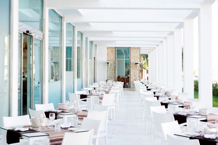 As catering services, the hotel offers half board and breakfast only. Breakfast is offered from the buffet. Enjoy your lunch à la carte. Dinner is also served as a buffet or à la carte. For the meals, there is a buffet restaurant with a terrace (Mediterranean, gluten-free and vegetarian dishes) and the cafeteria as well as the pool bar.