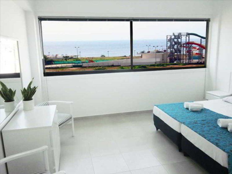 This enchanting hotel boasts a privileged location in Ayia Napa, just a few steps from the gorgeous sandy beach and right in the heart of the vibrant tourist resort. Within walking distance visitors will find a myriad of restaurants, bars, shopping opportunities and entertainment venues such as the popular amusement park or public swimming pool adjacent to the property. This attractive establishment showcases self-catering studios and apartments. The units showcase spacious and luminous surroundings fitted with commodious furniture and decorated in soothing tones. Visitors may enjoy mouth-watering dishes at the on-site restaurant and cafeteria and on warm days freshen up in the shimmering pool situated in the sister hotel. Travellers may also make use of the free parking and in case of any query turn to the friendly staff at the 24-hour reception.