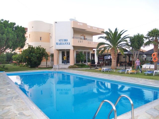 Marianna Studios features self-catering accommodation with tiled floors and simple furnishings, each has a kitchenette with a fridge, cooking hobs and dining area. All studios open to a private balcony with views of the well-tended garden and pool, or side views of the Cretan Sea.