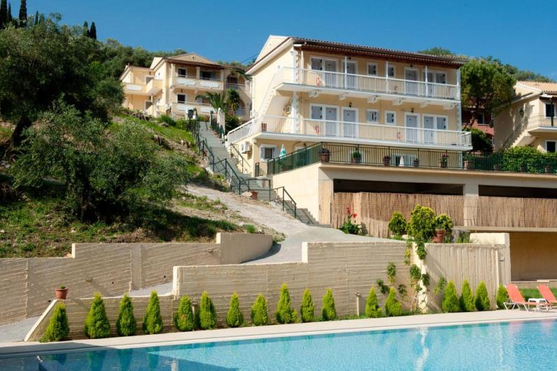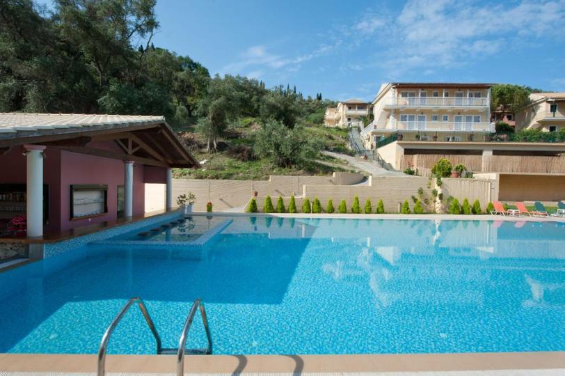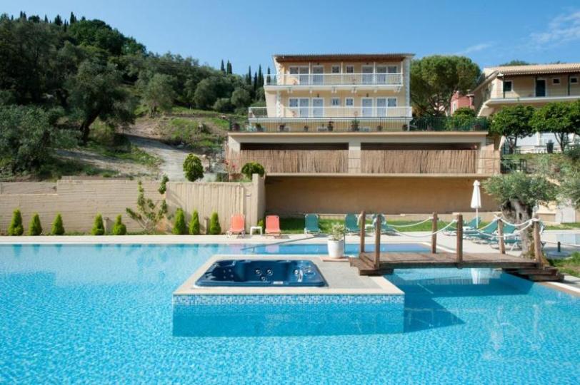 Marina Apartments and Studios is a family business started in 1980. It strive to create a friendly atmosphere, by helping its customer-friends so everybody can have a wonderful holiday. It is Situated at the Agios Gordis village surrounded by well kept gardens. Up on a steep hill, 400m from the sea, featuring an outdoor pool, the apartments come fully equipped with a kitchen (electric stove with oven, microwave, dishes), showers, hairdryer, kettle, satellite TV (5 Channels), Air Condition, safe deposit, iron, DVD player, fridge and private terrace.