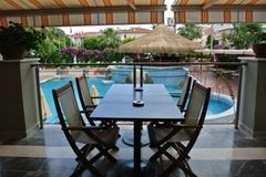 In the outdoor area of the hotel you will find one seasonally open fresh water pool. Here, there are sun umbrellas and sun loungers for free available. A bar at the pool offers guests refreshing beverages.