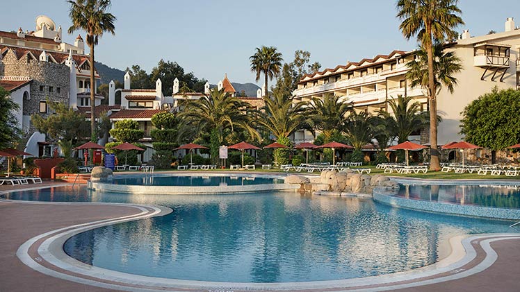 Overlooking the most beautiful bay in the Marmaris region, this luxurious hotel is situated right by the beach in Icmeler, making it ideal for a delightful holiday of sea and sun.