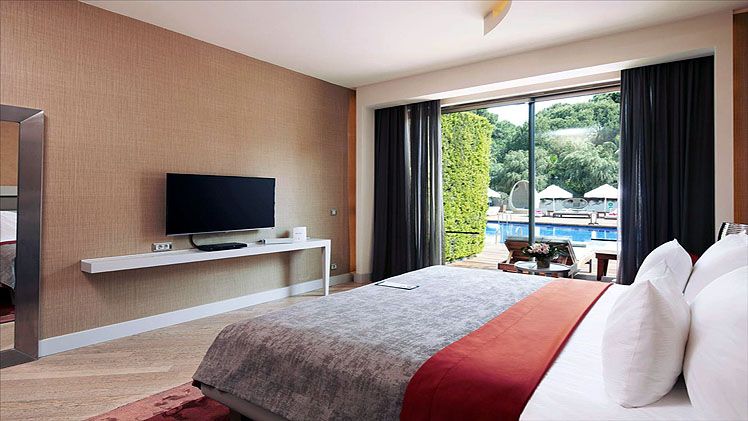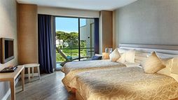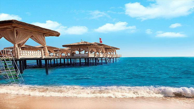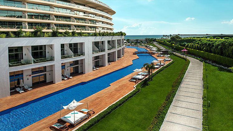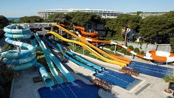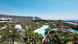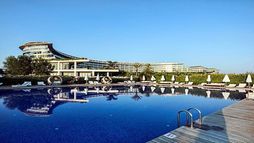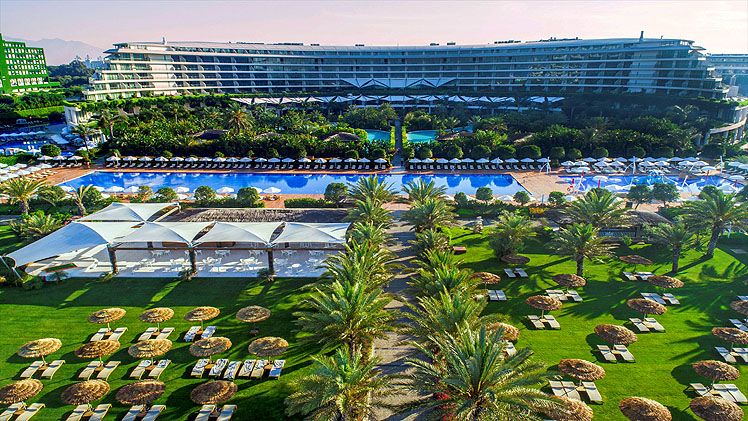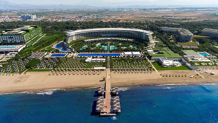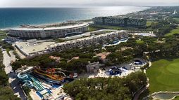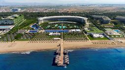 This brand new spectacular beach hotel, the biggest ‘all suite’ hotel in the Mediterranean, was opened in 2011 and offers a total of 531 rooms including private villas. It is perfect for an exclusive holiday for families, couples, honeymooners, golf enthusiasts and those wishing to mix business and pleasure. A ‘space-age’ designed atrium and lobby area with 24-hour reception and check-out service welcomes guests in the main building and the theme throughout is lavish and modern. The family-friendly hotel also offers a golf course, aqua park, Maxxi Land (activities for 1 to 17 year olds), restaurants, a number of bars including an Irish Bar and a disco. Located on Turkey’s Mediterranean coast, it is 1km from Belek on a 300m stretch of beach with a pier, and just 35 km from Antalya Airport. (Some facilities may not be operational due to weather/seasonal conditions).