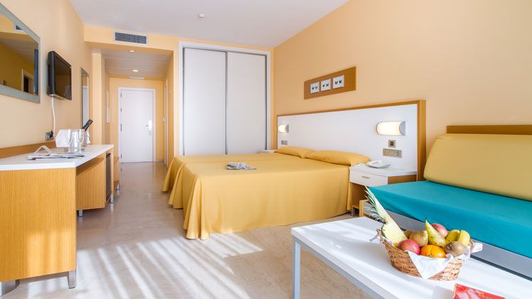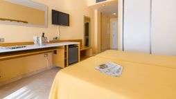 The Mediterraneo features 175 twin rooms, all are decorated in a contemporary fashion and are offered fully equipped with full bathroom including bidet and hairdryer, air-conditioning/heater(a/c on summer and heating on winter season), satellite television, direct dial telephone, internet access (local charge) and in room safe (local charge). All rooms enjoy a furnished balcony or terrace and daily maid service. Double beds can be requested (subject to availability). Please note 3rd adult or children sleep on a sofa bed.