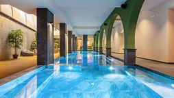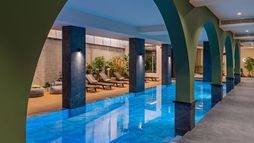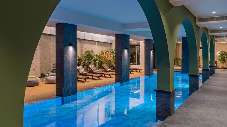 WELLNESS : You are invited to a wellness heaven, where expert treatments combined with pure ingredients remedy your inner balance in a serene environment. Our 350 m² Wellness Spa Centre lies at the lower level of Minos Ambassador and features a large heated indoor pool with hydro massage, hammam, sauna, massage rooms, face & body treatment rooms, gym, hair & nail salon.