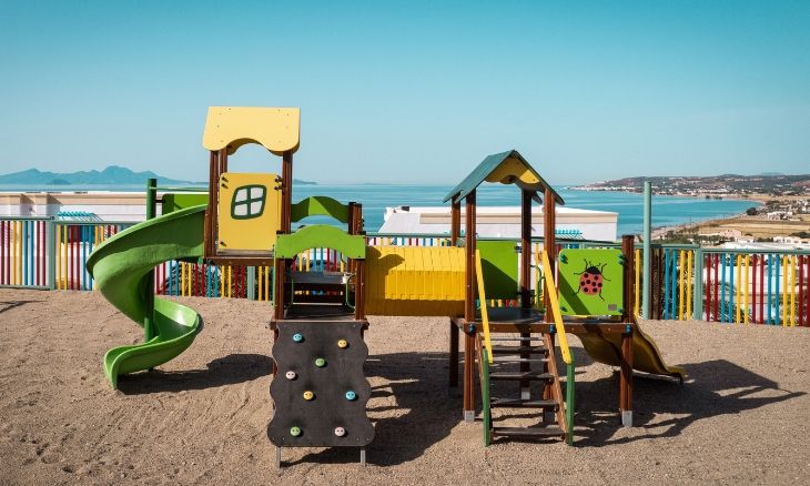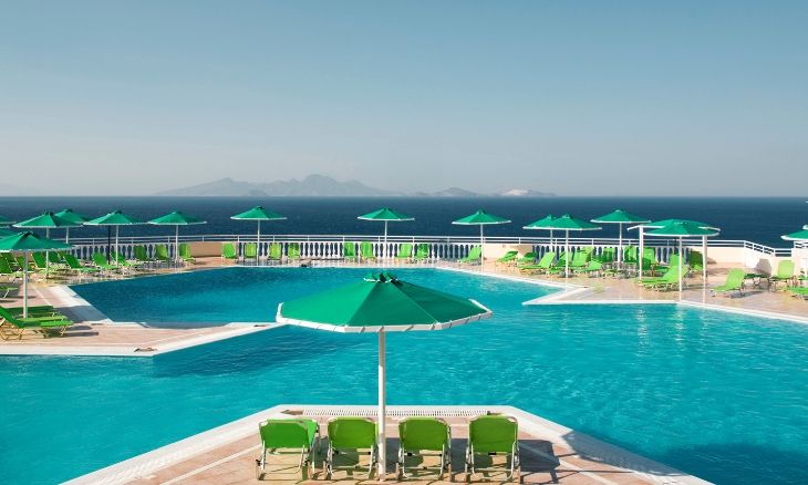 The hotel is home a large saltwater pool and 2 water slides for adults. Surrounding the pool, you’ll find ample sun loungers and parasols, along with a sun deck for tanning. Children also get their own pool with a fun slide and an exciting all-day kids’ club (ages 4-11) featuring organised sports, games, discos and cooking lessons. A junior club for ages 12-16 operates throughout July and August.