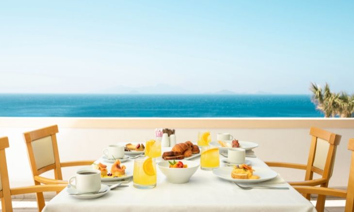 During the day you’ll find a number of tasty options dotted throughout the hotel’s grounds. Zia Snack Bar serves up homemade Greek gyros, burgers and wraps on the beach, Pizza on the Beach rustles up authentic Italian pizza, and the hotel creperie offers self-service gelato and sweet crepes at all hours of the day and night.