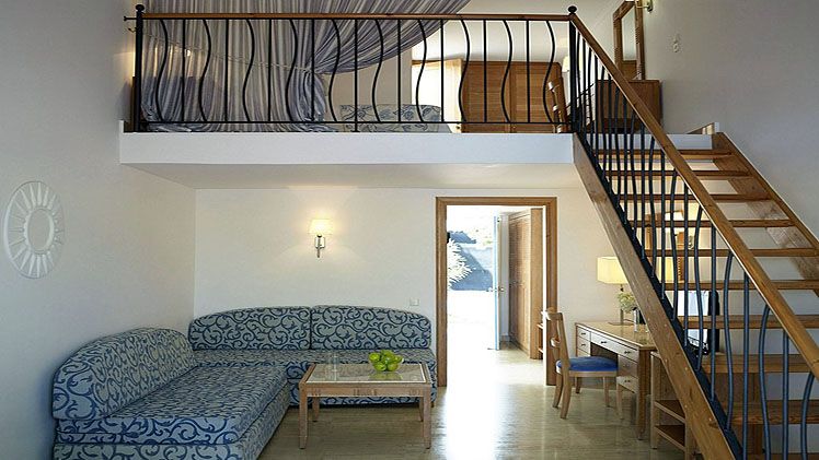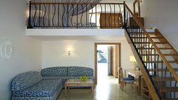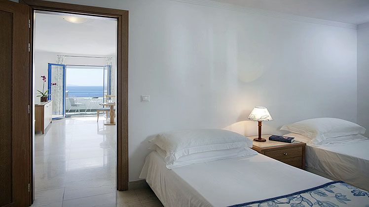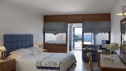 The hotel has a number of accommodation types, including the Maisonette, where you’ll find a separate living room and 2 bathrooms, and the Family Sea View, offering a closeable twin bedroom for children and a balcony with panoramic ocean views.