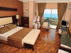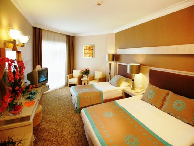 The Mukarnas Spa Resort Hotel features 425 Standard Rooms with Land & Sea Views, Standard Rooms with Side Sea View, Family Rooms with Land View, Family Rooms with Sea View, and standard rooms that can be booked for single use (with Side Sea View). All rooms have bathroom facilities (bath and shower, hair dryer, WC), central system timed air conditioning, electronic key card access, Internet access, Mini bar, safe, Satellite TV, telephone, Wi-Fi Internet access, and a balcony. Free baby cot is available on request. Four rooms are available with disabled access.